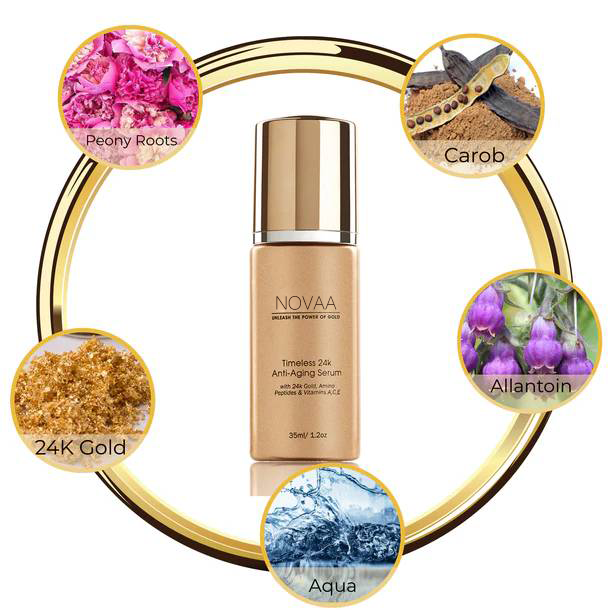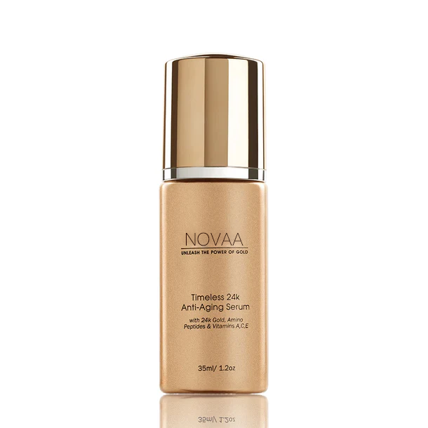 NOVAA Anti-Aging Serum is formulated to help combat visible signs of premature aging such as fine lines and wrinkles. Enriched with 24k Gold, Amino Peptides, and super-antioxidants Vitamins A, C, E – all known for their anti-aging properties – this rich, luxuriously silky serum is designed to help in improving skin firmness, texture, and elasticity while recharging and boosting the skin for a refreshed, radiant, and youthful appearance. For all skin types. For best results, follow with our Anti-Aging Cream.